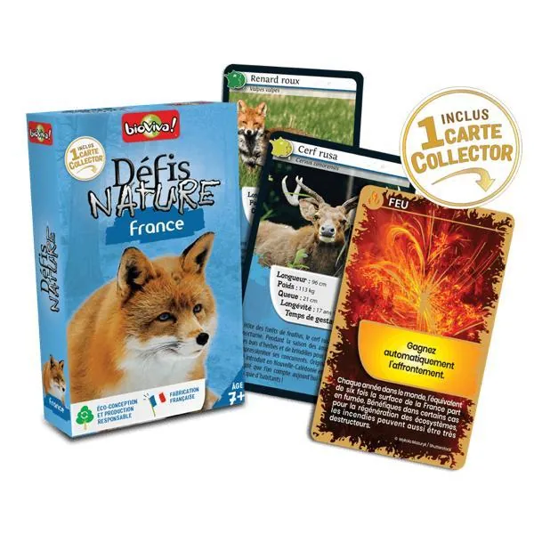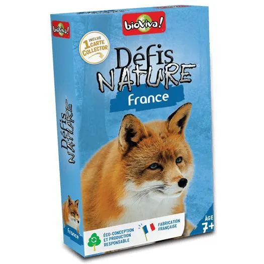 Le principe de Défis Nature - France est simple : les enfants de 7 ans et + parient sur les points forts des animaux. Le joueur qui possède la plus forte caractéristique remporte les cartes des autres joueurs. Le premier à collecter toutes les cartes du jeu gagne la partie.