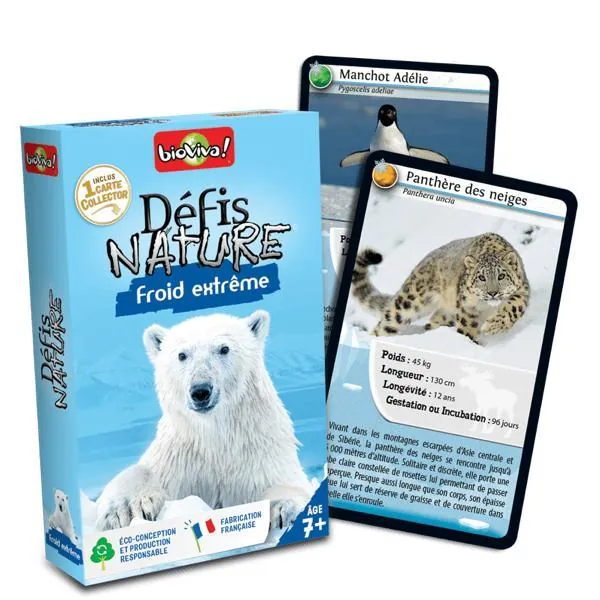 Défis Nature - Froid extrême vous emmène à la rencontre des animaux du grand froid ! Découvrez les espèces à préserver, puis pariez sur les points forts de vos animaux pour collecter toutes les cartes du jeu et remporter la partie. Alors, prêts à relever le défi ?