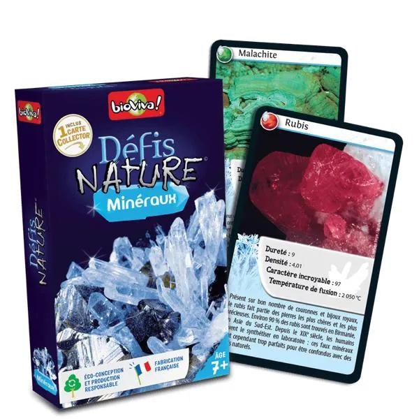 Défis Nature - Minéraux vous emmène à la rencontre des plus beaux minéraux de notre planète ! Pariez sur leurs points forts pour collecter toutes les cartes du jeu et remporter la partie.