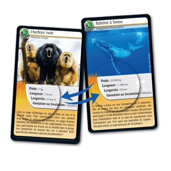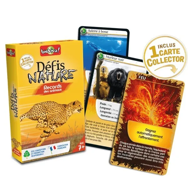 Le principe de Défis Nature - Records des animaux est simple : les enfants de 7 ans et + parient sur les points forts des animaux. Le joueur qui possède la plus forte caractéristique remporte les cartes des autres joueurs. Le premier à collecter toutes les cartes du jeu gagne la partie.