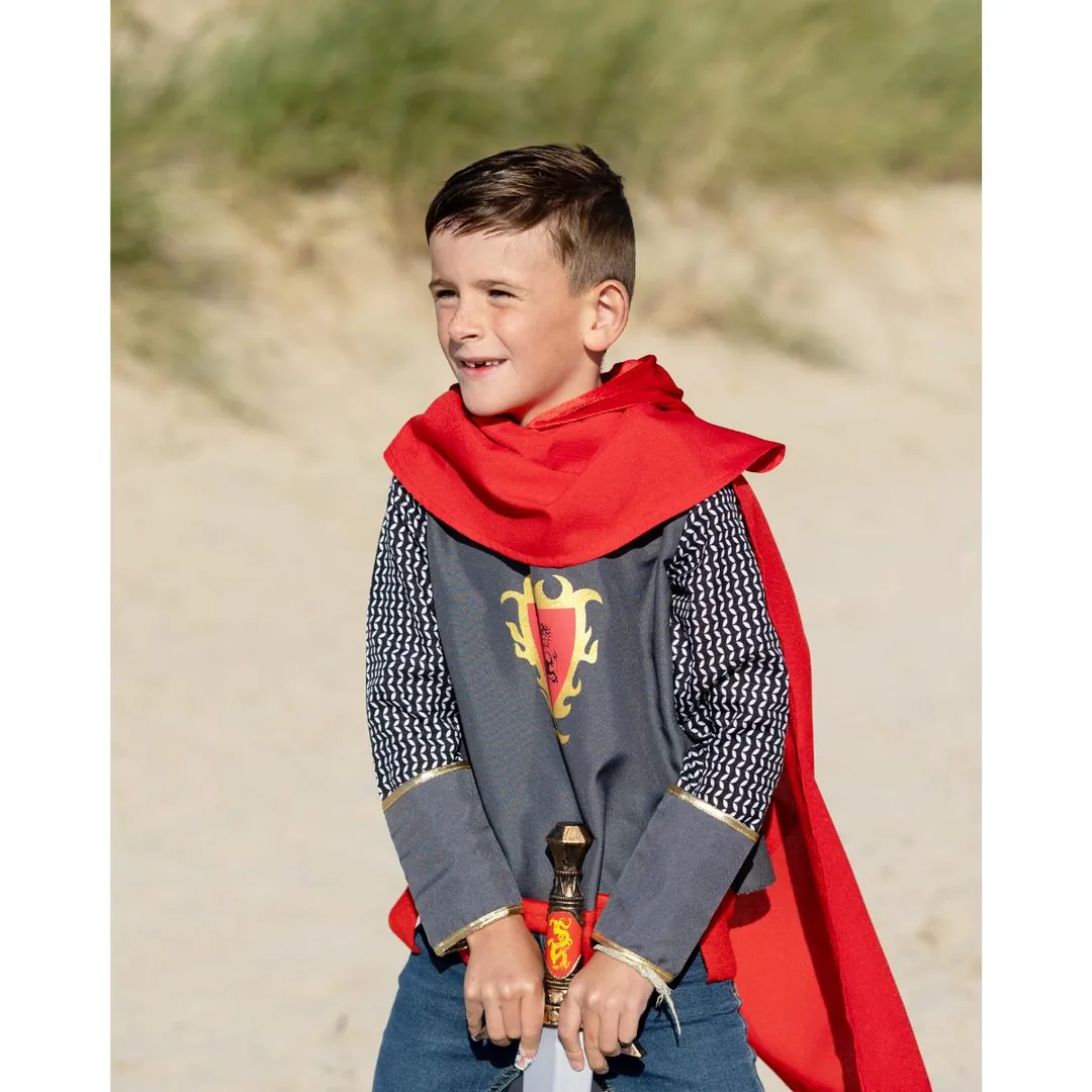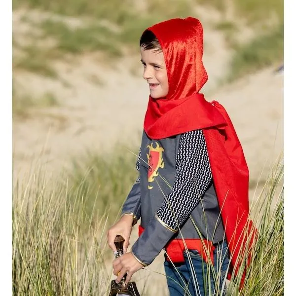 Le costume se compose d’une veste de chevalier en coton, avec impression d’un blason, de manches en polyester imprimées, d’une grande cape et d’une cagoule.