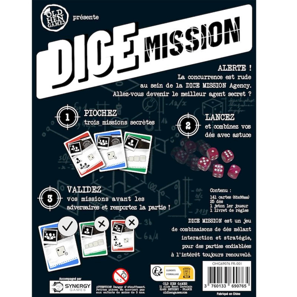 Dice Mission est une jeu de combinaisons de dés mêlant interaction et stratégie, pour des parties endiablées à l’intérêt toujours renouvelé.