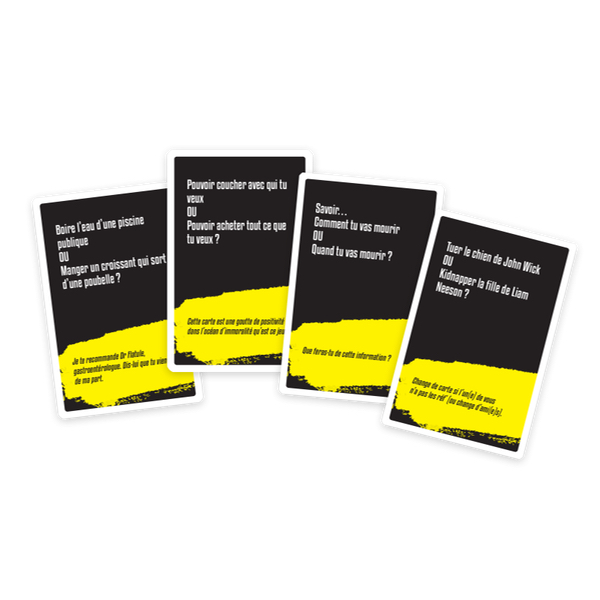 Ici, pas de choix facile : chaque carte est une invitation à des dilemmes hilarants qui mettent à l’épreuve votre logique... ou votre capacité à faire des choix catastrophiques.