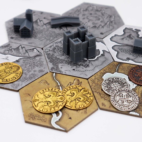 La réserve de pièces de chaque joueur est gardée secrète. Lorsque tous les territoires ont été attribués (sauf un), la partie se termine. Chaque territoire rapporte de 1 à 5 points selon les bâtiments présents. La faction avec le plus de points gagne. Le joueur avec le plus de pièces de cette faction gagne !