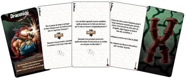 En quelques tours de jeu, vous aurez raconté un récit délirant, mêlant humour et aventure, jusqu’à la carte finale « L’heure du vote a sonné ! ».