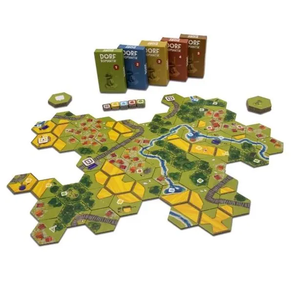 Le décompte final des points s'établit selon les lignes de chemins de fer les plus longues, les cours d'eau les plus majestueux, les différents terrains et les objectifs brillamment atteints. Dorfromantik propose également une dimension de campagne, où les scores obtenus débloquent un contenu additionnel captivant : nouvelles tuiles, cartes inédites, pions spéciaux, et bien plus encore. Chaque partie est une opportunité de perfectionner votre stratégie et de vous surpasser.