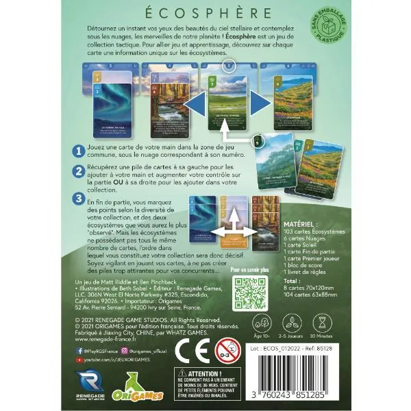 Vous êtes des explorateurs et vous parcourez la planète pour observer les richesses des 8 biomes qui nous entourent. À vous de rendre hommage à la beauté de la nature en réalisant l’écosphère idéal.