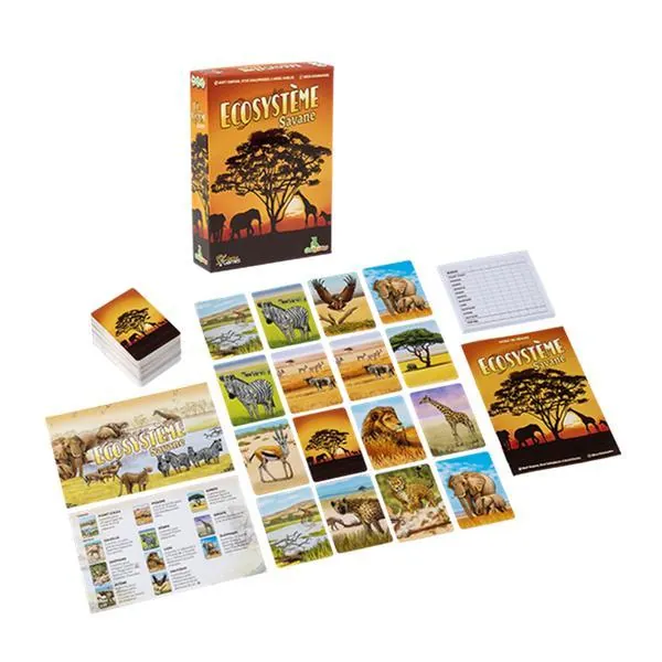 Composez votre grille de 20 cartes en respectant les liens qui unissent les animaux de la savane !