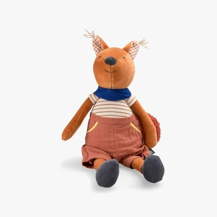 Il suffira de tirer sur la pastille pour actionner la boite à musique et faire sourire les bébés ! Jeu de textures et de couleurs pour ce tendre compagnon écureuil.