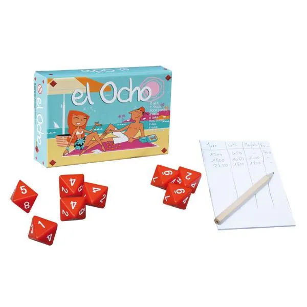 A chaque lancer, mettez de côté un ou plusieurs dés, puis relancez les dés restants si vous le souhaitez. Si vos lancers contiennent un 1, un 5 ou un brelan vous marquez des points. Quant au 8 il vous sauve, mais attention, tout piètre lancer annule les points accumulés.
