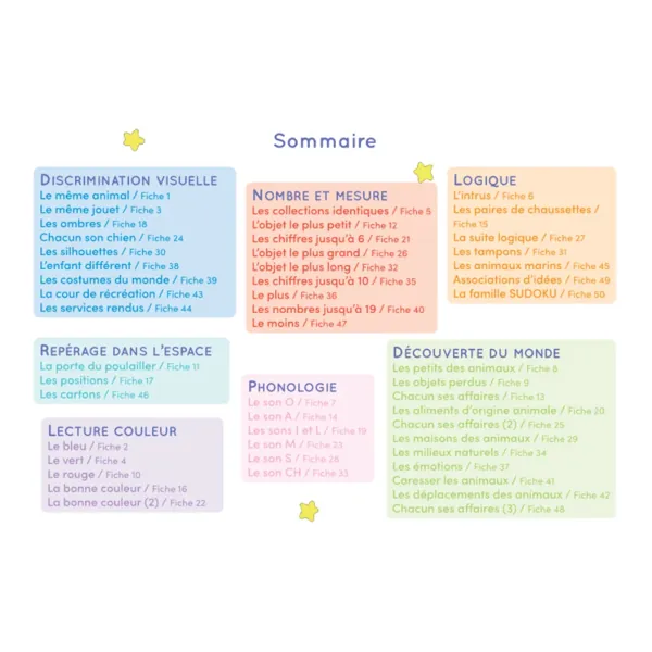 Contient : 50 fiches d’activités, des gommettes à gratter, tableau de réussite + diplôme.