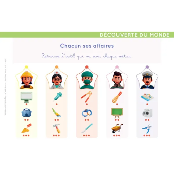Excellent outil pour les ateliers en PS/MS/GS. Développe motricité fine, observation, logique.