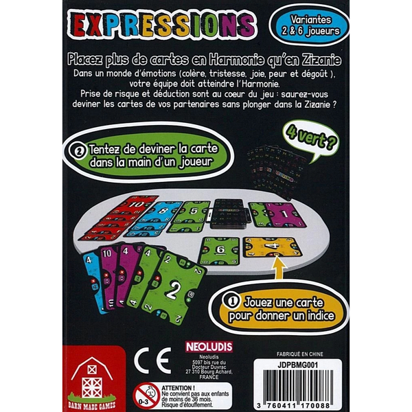 Vos partenaires devront interpréter ces indices pour deviner vos cartes, dans un équilibre subtil entre prise de risques et déductions. Ensemble, visez à placer davantage de cartes en Harmonie qu’en Zizanie.