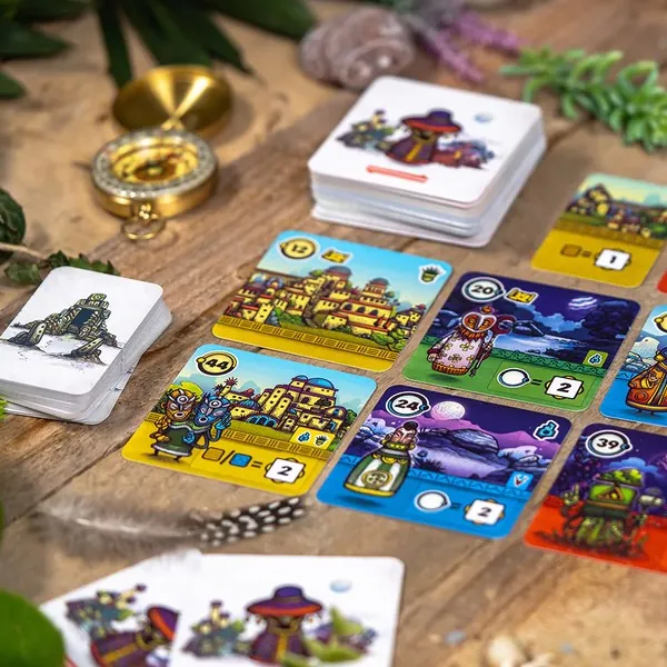 Réalisez un tableau de 8 cartes, de gauche à droite. Chacune vous donne des objectifs ainsi que les moyens de réaliser les autres. Le sel du jeu consiste à planifier efficacement la construction de votre tableau. D'autant que le scoring se fait dans le sens inverse de l'ordre de pose des cartes !
