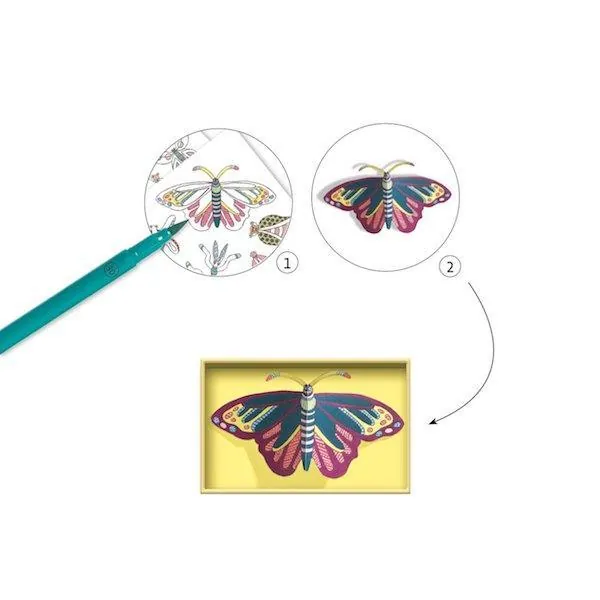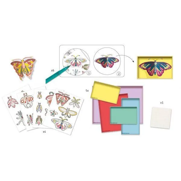 Grâce à ce coffret, votre enfant va créer sa propre collection ! Il va colorier les différents insectes, les détacher et les placer dans les cadres de présentation. Une magnifique collection d'insectes colorés et en volume bien mise en valeur dans ces jolis cadres.