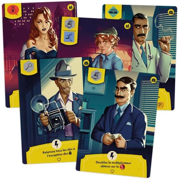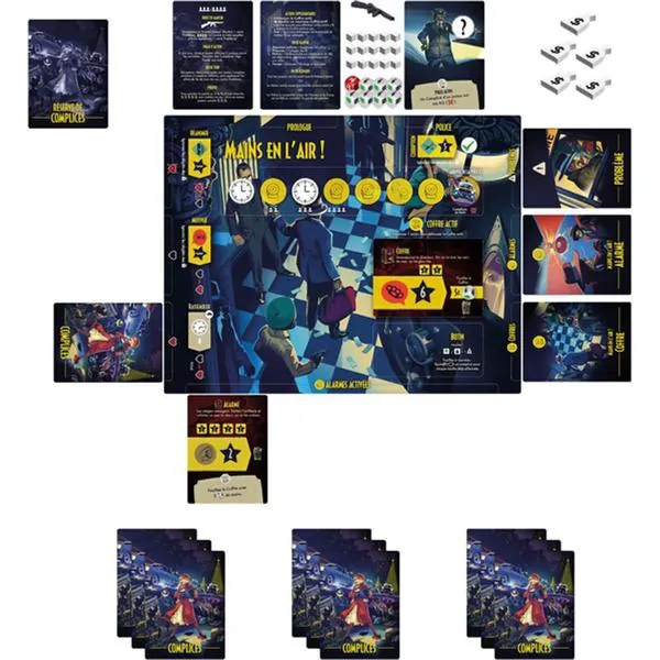 Vous devrez d’abord terminer deux scénarios afin d’obtenir assez de réputation pour que les Complices les plus craints de la ville rejoignent vos rangs et vous aident à concrétiser vos plans pleins d’ambition. Chaque scénario possède ses propres règles expliquées dans le Livret de scénarios et résumées sur une carte Aide de jeu.