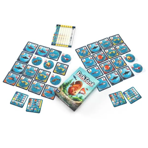 Fish Tank est un jeu de placement pour 2 à 6 joueurs. Dans ce jeu, vous devrez combiner les différentes espèces de poissons disponibles afin de leur permettre de prospérer dans votre aquarium. Chacune des 12 espèces disponibles dans le jeu, a ses besoins et il faudra faire preuve d'astuce pour que chaque petit habitant de votre résidence aquatique se sente à l'aise.... surtout quand vos adversaires viennent s'en mêler.