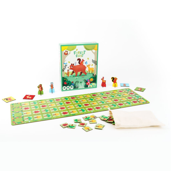 Un premier jeu pour les tout-petits rapide et très simple. Dans Forest First les joueurs incarnent des animaux de la forêt et font la course : le premier qui atteint le bout de sa ligne remporte la partie. Pour se déplacer pas besoin de manipuler un dé ou de compter des cases, les déplacements se font grâce à un système de couleur : la tuile tirée indique sur quel arbre avancer. Une mécanique qui évite la frustration ou l'attente de son tour de jeu, car tous les personnages avancent en même temps.