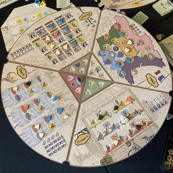 Car Fromage se joue simultanément, grâce à un plateau tournant.