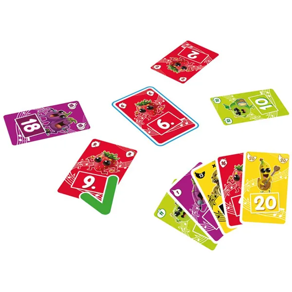 • Fin de manche : à l'issue des 7 tours, toutes les cartes en main sont ajoutées aux cartes posées devant soi. Les cartes sont organisées par colonne (un type de fruits par colonne).