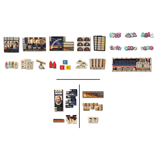 Avec ses mécaniques profondes (construction de moteur, combinant gestion tactique des dés et programmation d’actions) ainsi que son thème historique prenant, Galileo Galilei offre une expérience riche pour les amateurs de jeux experts. Un mode solo complet est également inclus.