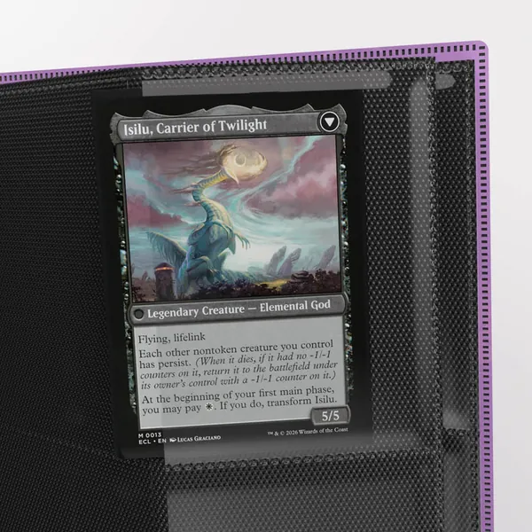 Avec 20 pages de 24 cases à chargement latéral, il peut contenir jusqu'à 480 cartes, même doublement sleevées. Les rangées à 4 poches sont parfaites pour les ensembles de jeux. Les pages noires et une large sangle élastique avec des coutures renforcées lui donnent une finition élégante et sûre.