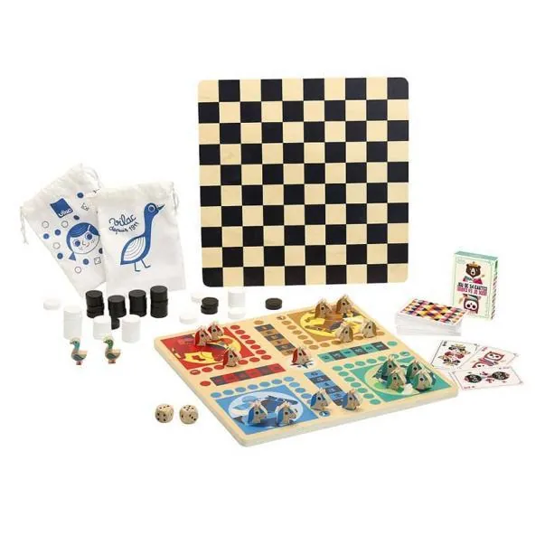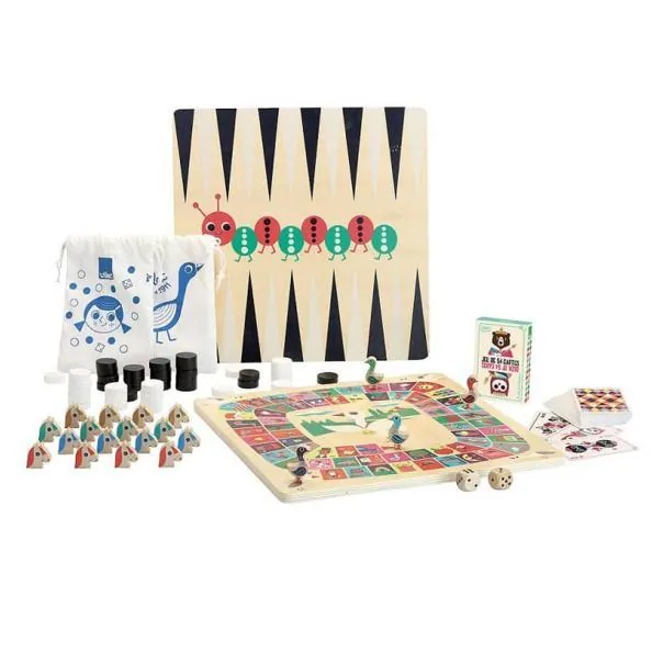 Découvrez le grand coffret multi-jeux illustré par Ingela P. Arrheniusde Vilac, un coffret de jeux traditionnel pour jouer de 2 à 4 joueurs à partir de 4 ans. Un coffret en bois au look vintage et retro.