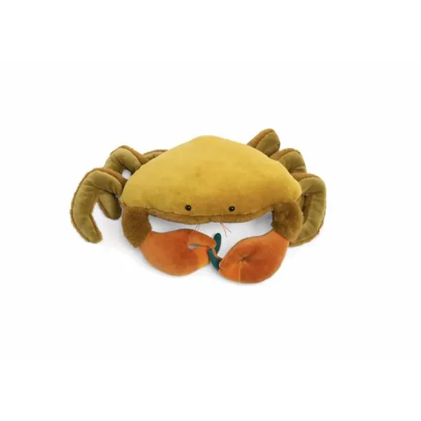 Le grand crabe aux couleurs éclatantes de vert, jaune et orange de la collection "tout autour du monde" sera le parfait compagnon pour suivre les petits dans toutes leurs aventures !