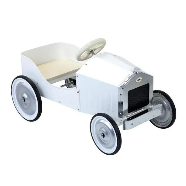 Découvrez la grande voiture à pédales ivoire de Vilac, un porteur en métal pour remonter le temps avec cette grande voiture rétro et chic pour vivre de grandes aventures à partir de 3 ans.