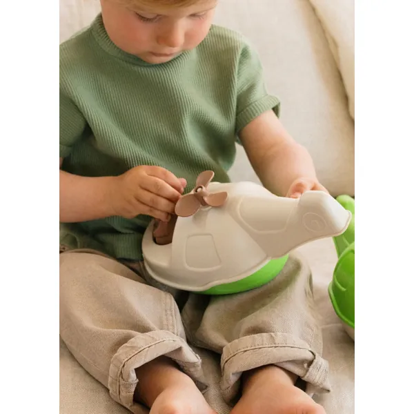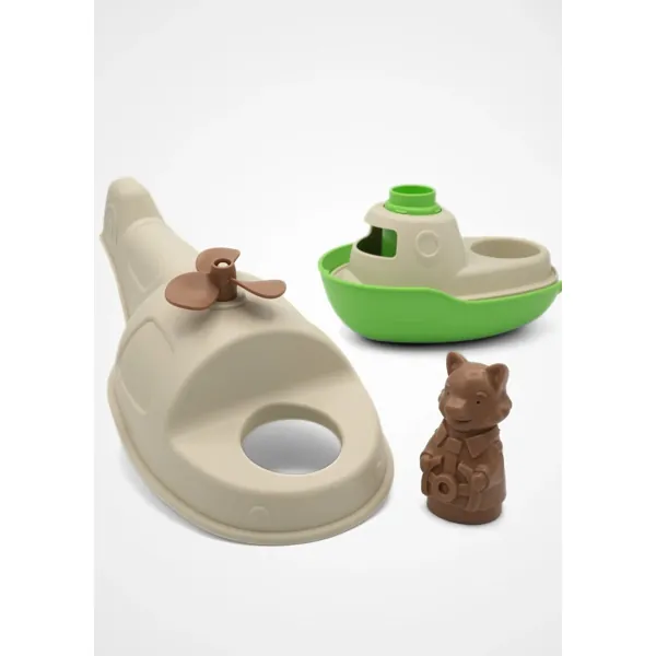Un jouet 2-en-1 qui flotte, avec coques amovibles permettant aux enfants de le construire et de le déconstruire à leur guise.