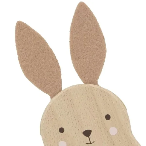 Ce beau hochet sensoriel lapin est en bois de hêtre et feutrine.
