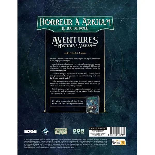 Ces scénarios nécessitent le livre de base Horreur à Arkham pour être joués.