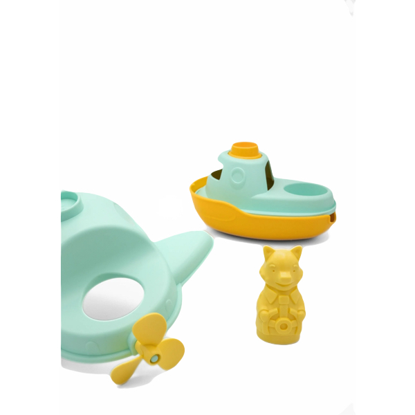 Un jouet 2-en-1 qui flotte, avec coques amovibles permettant aux enfants de le construire et de le déconstruire à leur guise.