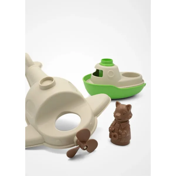 Un jouet 2-en-1 qui flotte, avec coques amovibles permettant aux enfants de le construire et de le déconstruire à leur guise.