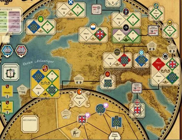 Pourtant, cela reste un jeu peu complexe, jouable en une courte soirée. Il vise à honorer son ancêtre spirituel, Twilight Struggle, mais en proposant des règles simples et un système de jeu accessible, immergeant le joueur dans une partie à la portée mondiale et historique dans le cadre d’une seule soirée. Dans les tours de paix, les joueurs construisent leurs intérêts économiques et leurs alliances, et profitent des événements historiques représentés par les cartes Événement. Ils doivent choisir judicieusement leurs investissements, tout en refusant des opportunités à leur adversaire. Lors des tours de guerre, chaque théâtre de conflit peut apporter de grandes récompenses de conquête et de prestige, mais les gains territoriaux peuvent disparaître à la table des traités. À la fin du siècle, les Britanniques dirigeront-ils un empire sur lequel le soleil ne se couche jamais ? Ou la France éclairera-t-elle la voie du monde, comme la superpuissance des rêves du Roi Soleil ou de la république de Lafayette ?