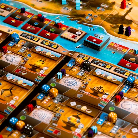 Inventeurs du Tigre du Sud se déroule à l’apogée du califat abbasside, vers 850 après JC. Au cours des dernières décennies, Bagdad est devenue le foyer de milliers de mathématiciens, astronomes, chimistes et médecins. En tant qu'innovateurs inspirés, les joueurs sont impatients de développer des engins et inventions pour impressionner leurs pairs. Vos ingénieux appareils orneront ils la Maison de la Sagesse, ou sont-ils destinés à la poussière et à l'oubli ?