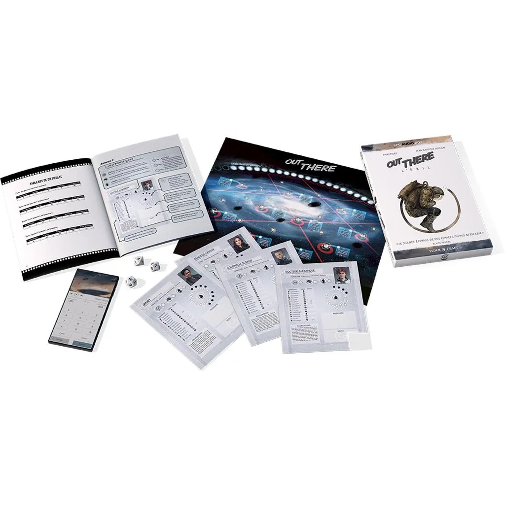La boîte contient des dés, des fiches de personnages, une carte et un livret. Lancez ensuite l’application et écoutez votre maître de jeu vous compter les événements et vous immerger dans l’univers de l’aventure.