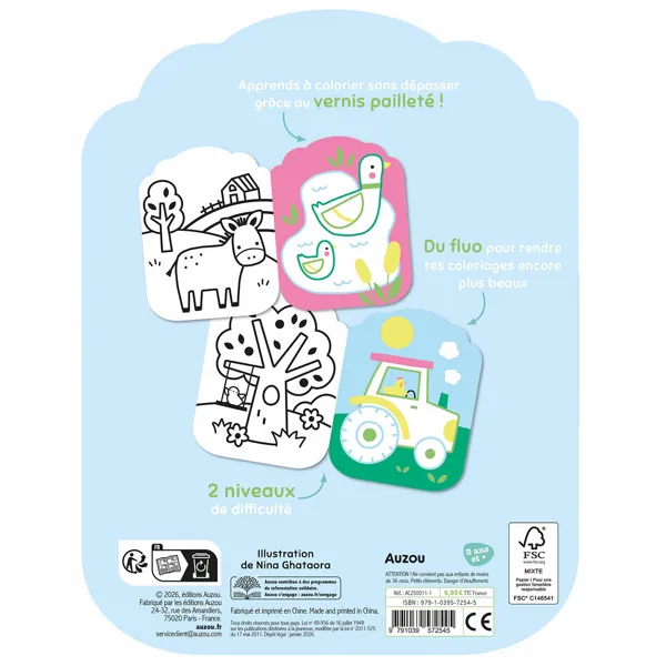 Avec ce cahier, les enfants vont découvrir 30 beaux coloriages avec du fluo, sur le thème des animaux de la ferme.