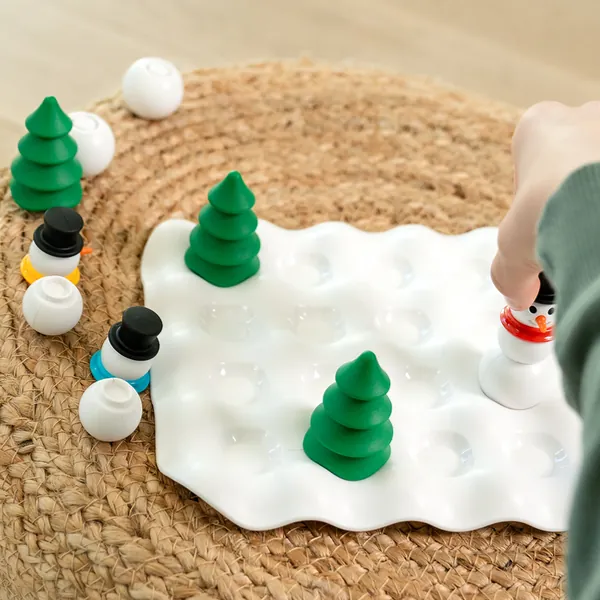 « Je voudrais un bonhomme de neige » est un jeu de déplacement indirect de pièces mobiles vous proposant de planifier les mouvements afin de reconstituer tous les bonshommes de neige.