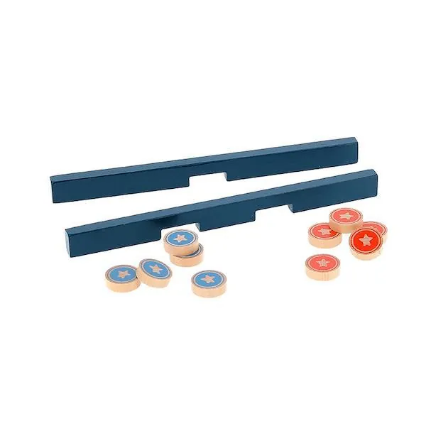 Le but est de se débarrasser de tous ses palets avant son adversaire ou, encore plus difficile, de ne plus avoir un seul palet de son côté. Il faut se servir de l'élastique de son côté comme lanceur et être le plus habile pour viser l'unique trou au centre du jeu.