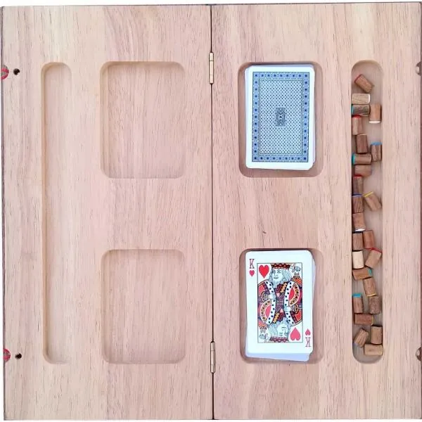 La boite se referme avec les pions à l'intérieur, jeu de cartes inclus.