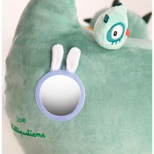 Voici Joe en version peluche d’activités géante ! Différentes matières à toucher, des sons à découvrir et à écouter, un petits miroir, un mini doudou hibou... Sa grande bouche sert de cachette ou permet de ranger son pyjama. Une multitudes de plaisir et de découvertes pour les bébés !