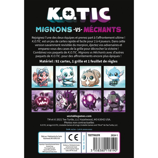 Après Dragons contre Licornes, voici la seconde boîte de K.O.Tic, Mignons vs Méchants !