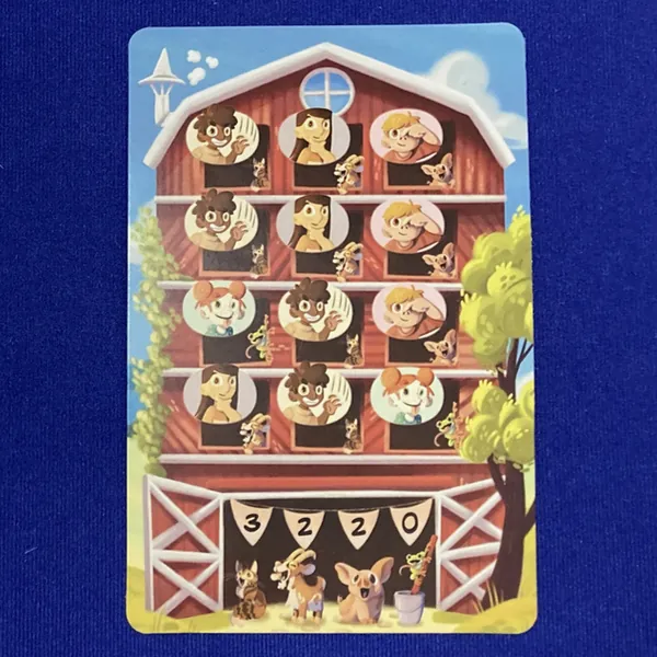 Les autres doivent interpreter ces signaux et repérer l’animal le plus représenté.. ou celui qui manque à l'appel. Dans une mini-boîte ingénieuse qui se transforme en grange, tentez de former le plus grand paysage en marquant un maximum de points !