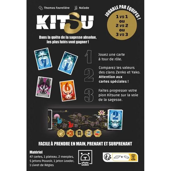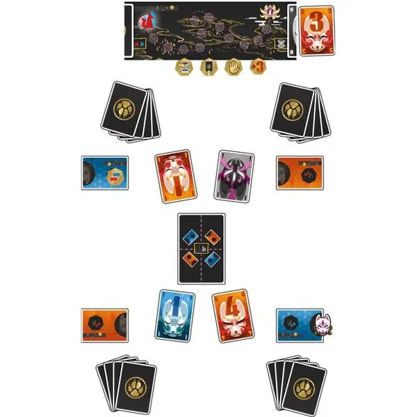 Seul ou en équipe, associez vos cartes pour faire progresser votre Kitsune sur la piste de la Sagesse