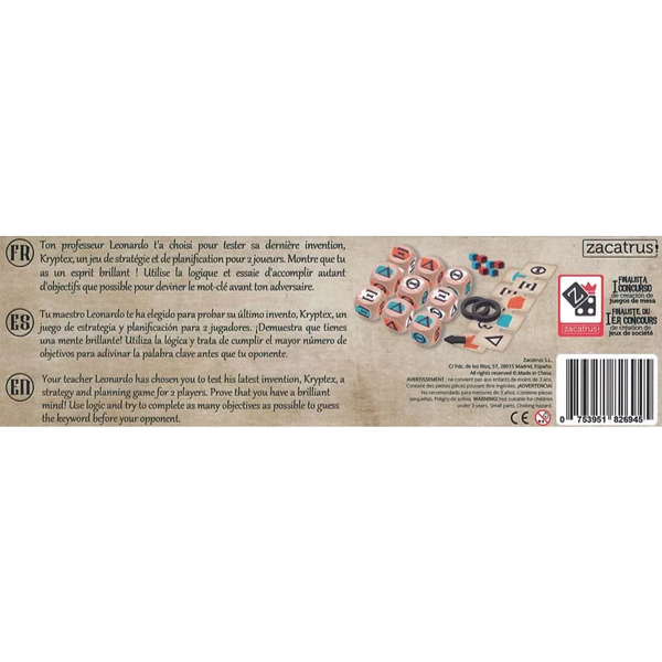 Le professeur Leonardo t’a choisi pour tester sa dernière invention, Kryptex, un jeu de stratégie et de planification pour 2 joueurs.
