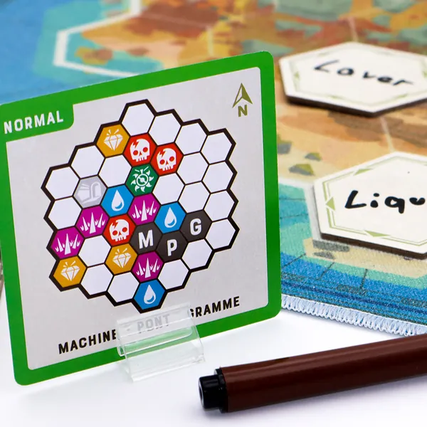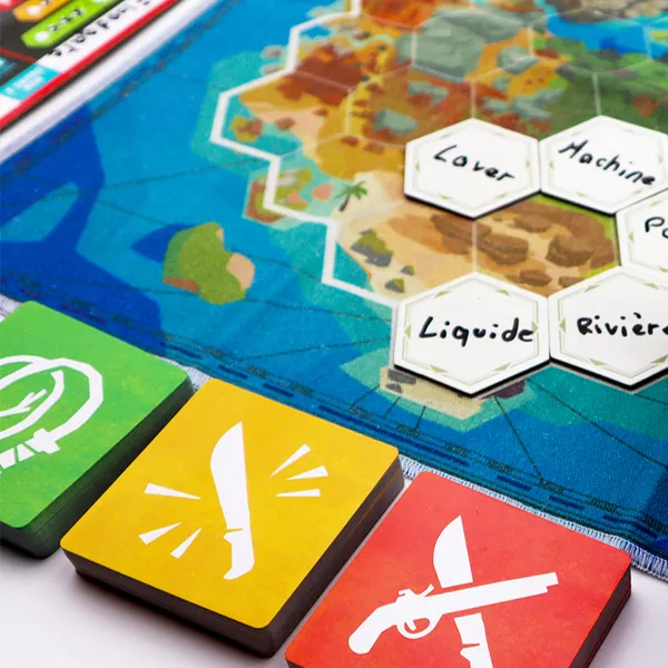 Un joueur de l’équipe est désigné guide. C’est le seul qui connait le contenu des hexagones de l’ile. Grâce à trois mots imposés, placés à des endroits précis de l’île, il va tenter de conduire son équipe à faire les bons choix. Pour cela, il écrit un nouveau mot sur un hexagone, en rapport avec un ou plusieurs mots déjà présents. Ses coéquipiers discutent alors pour décider du déplacement de leur groupe sur l’île. Si l’indice est en rapport avec le mot du dessus, il faut peut-être aller au nord, s’il est en lien avec les deux mots de droite, il faut peut-être aller à l’est, etc.