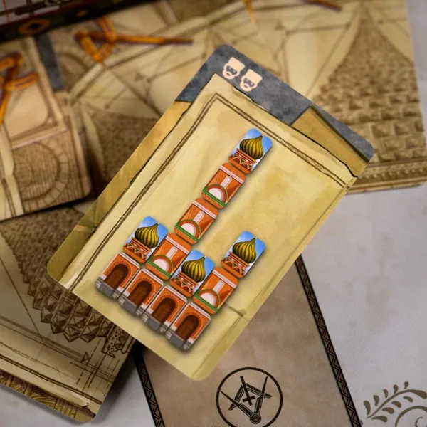 Les joueurs peuvent décider de bâtir des parties de la Cathédrale mais aussi de travailler sur des ornements, qui seront également source de prestige. La partie s’achève lorsqu’un joueur a bâti 6 éléments de Cathédrale : les autres joueurs pourront alors effectuer un dernier tour pour tenter d’augmenter leur score.