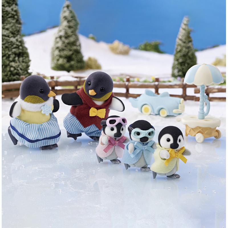 Contient : 1 figurine maman pingouin, 1 figurine papa pingouin, 1 figurine bébé pingouin, 1 chariot de glace, 2 cornets de glace.