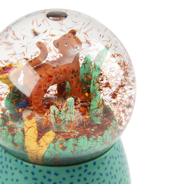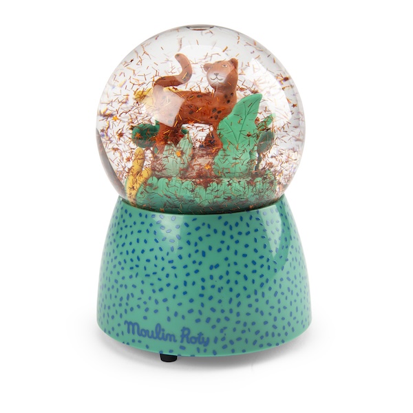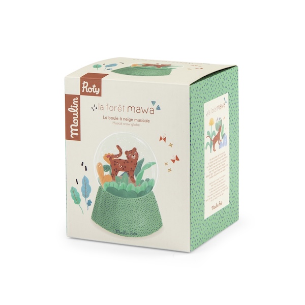 Avec cette belle boule à neige, les enfants vont découvrir Taïgo et Litchi en pleine promenade à travers les feuillages.